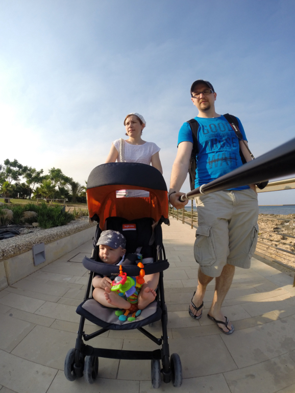 Мы с собой взяли нашу трость Inglesina trip. В испытаниях показала себя хорошо)) и на пляж с ней ходили, и в автобусе местном ездили, и спал сын в ней на улице. Почти все там катают детей на макларенах, что неудивительно, потому что все русские)) Там, кстати, в городе есть служба проката колясок, кроваток и детских стульев.