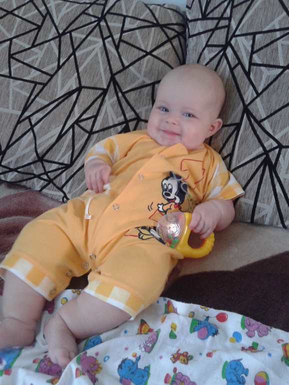 Физическое развитиеЦелых 5!!! Вес и рост еще не измеряли, но судя по степени уставания моих рук килограммчик наели. Лежа на животе хорошо упирается на ручки и поднимает корпус