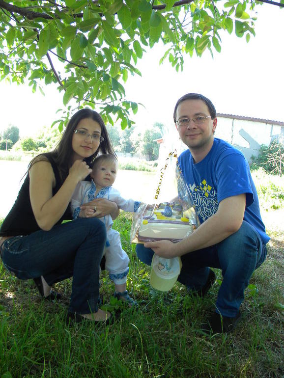 Хотя, честно признаться, до последней недели ничего не хотелось делать, так как сложно собрать всю семью вместе, потому что живем в 3 разных городах. Но помогла вторая мама, моя свекровь, и организовала чудесную "поляну", на которую мы с мужем и малым пришли "попастись", как виновники торжества. Единственным моим достижением был, пожалуй, только 4-х килограммовый торт, который я сама заказала, перелистав кучу вариантов ))