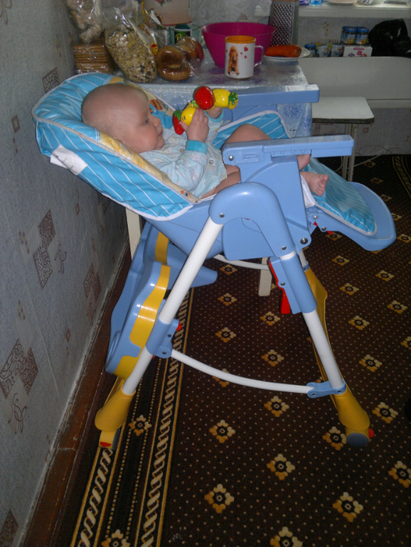 Кашу любим гречку, рис ест, но не с таким интересом))Кушаем Нестле, Фрутоняню, купила на пробу Хайнс и на молочке дали агушу-будем пробовать. По возможности закупаюсь в городе Абакане, так как цены там ниже, для сравнения каша Нестле молочная у нас 135 а там мы и за 89 покупали, и пюре Бабушкино лукошко по 33 а здесь по 48. Ну вот так. После всего вкусного решила дать снова брокколи-еле отобрала))Радует что Макс кушает и эту каку))) Пытается отобрать ложку у меня, и кушать соглашается только на своем стульчике. Кстати да, купили стул для малыша))