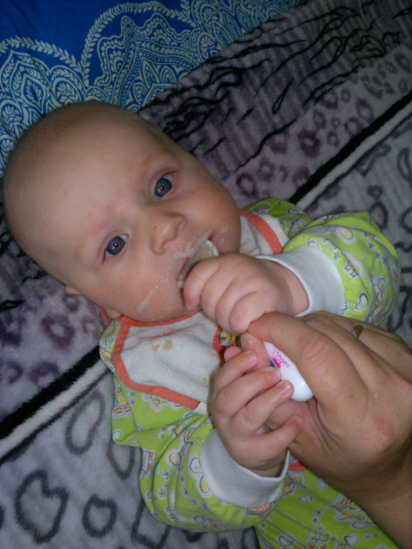 Ротик....ой...руки по локоть там, слюни рекой, грызет все!!!))Начинаю отбирать руки-крик и обижалки((( От того что постоянно вытираю-натерла прыщики на подборотке( Начал грызть грызунок и прорезыватель. Ну что ж будем ждать))
