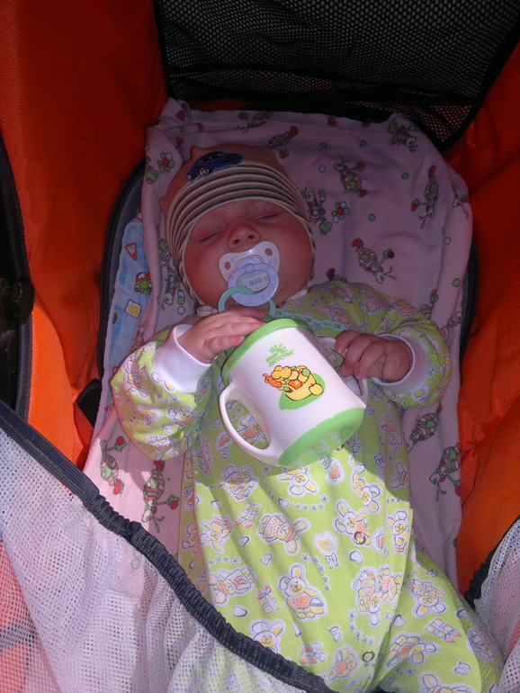 Гуляем на руках((Я одна еще его заставляю полежать, посмотреть, но если рядом бабушка-все, крик рев и пока она не возьмет будет кричать. Досадно, я переживаю что когда сядет, тоже будет капризничать. А в общем гулять он любит, он подозреваю лежать не хочет, потому что надо все разглядеть, когда достаю из коляски он прям бежать хочет и голова из стороны в сторону вертит))) Любопытный мой сладкий ребенок)) Развлекаем как можем)