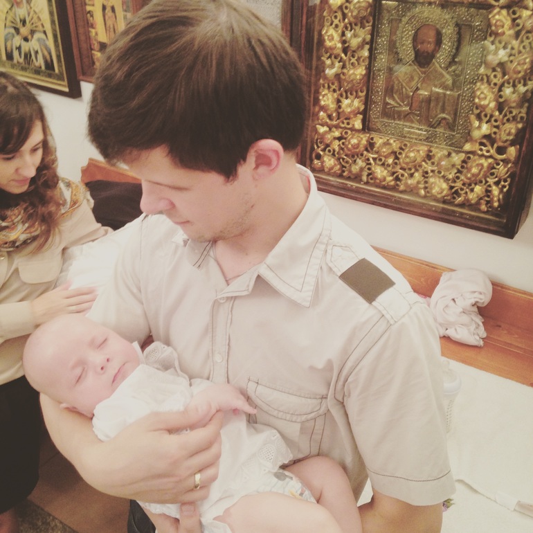 Крещение мы перенесли с стойко с плачем :) Когда крестили Сашку, то тот спал почти всю церемонию, и ни разу не заплакал, а с Тёмычем все наоборот 👶