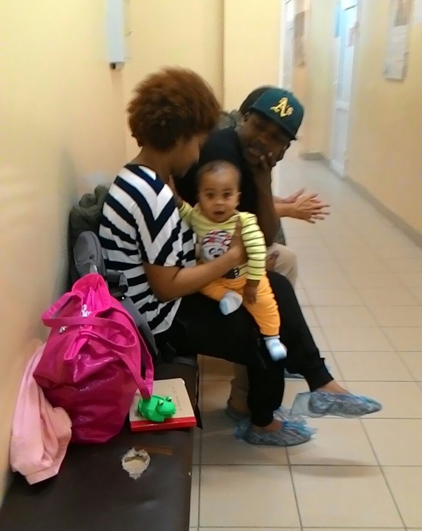 Напишу коротко..пока дочь спит..что то у меня сегодня куча дел))К педиатру как всегда не попали..не везет нам с ними..то в отпуске,то отстояли очередь и нас не приняли(...зато дочь в очереди познакомилась с маленьким негриком,а может это была девочка..мы не отличили)))играли вместе)мама даже умудрилась сфотографировать))