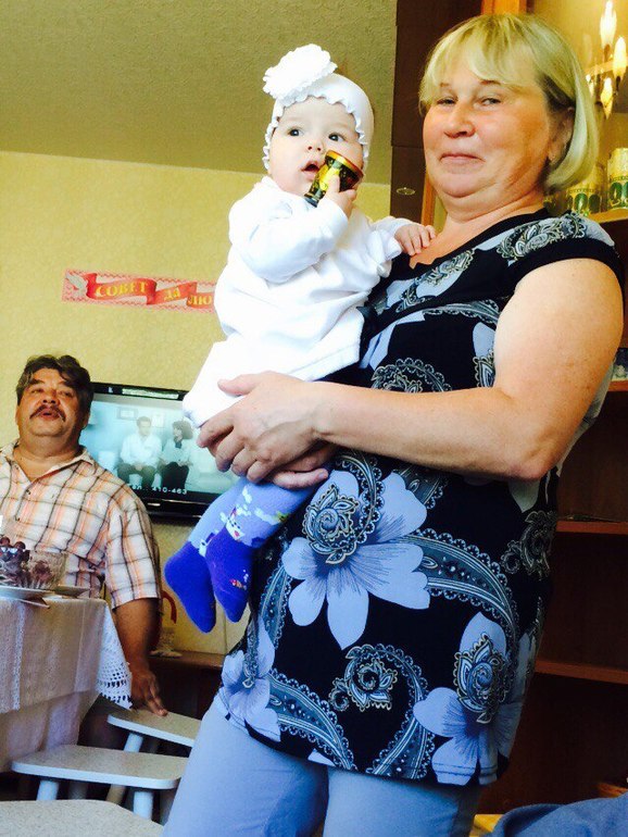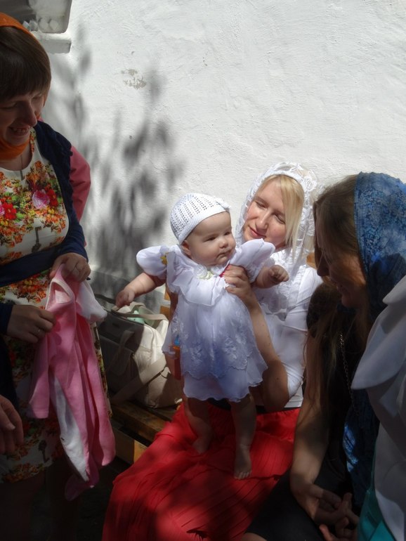 Ещё за месяц мы обзавелись двумя зубами. И покрестили Олесю.