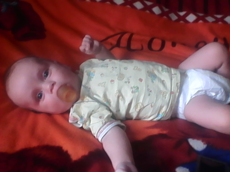 Всем привет. Вот и нам исполнилось 3 месяца. Вроде недавно только узнала, что беременна, а уже сынульке целых 3 месяца. Пролетели быстро, наверное потому что малыш спокойный. Колики нас обошли стороной. Газики конечно немного мучают, но терпимо. Развиваемся хорошо. Держим головушку, переворачиваемся со спины на бок и обратно, на живот пытается но еще не совсем получается)))))))) Вес наш 5800, рост 64 см. В этом месяце не очень много набрали, что то совсем плохо ест. На выходные ездили отдыхать на турбазу, сынулька себя вел замечательно, пролежал в коляске все два дня. Вроде и стоял в тенечке, а щечки загорели. Вчера ходили к неврологу, все в порядке у нас. Предложила нам общеукрепляющий массаж, мы согласились, так что теперь будем на массаж ходить. Ну вот вроде и все новости.