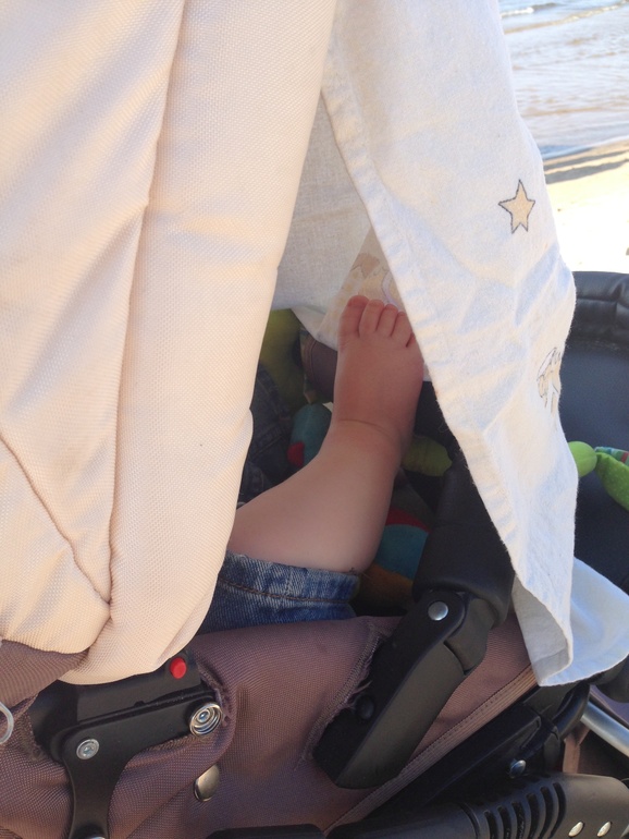 Максимка всё больше и больше привыкает к морю, водичке, песочку... Даже может сам немного поползать, потрогать песочек, постоять у коляски, но потом бегом к нам ползёт)) Так что сним особо не полежишь, ну ничего страшного)) И надо глядеть как бы соска не упала в песок, а то он быстренько её подымает и обратно в ротик))) Так что нам скучать некогда.