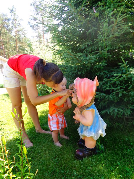 Самый большой прорыв в этом месяце у Захара произошёл в речи.До этого месяца,я писала,сын говорил в основном "мама" и "ам",эти слова он закрепил,их он уже 100% говорит осознанно, остальные,думаю,просто лепет,но его стало прям много:"дай-дай","баба","бам-бам","эгегей","ань-нянь","нога-нога" - он прям кучу всего лопочет и начал он так болтать в один день,т.е. вот с утра ещё не говорил,а потом раз,приехал на дачу и вышел из машины уже таким болтуном.Может,новые впечатления так повлияли?Парочка дачных фоток вам))))