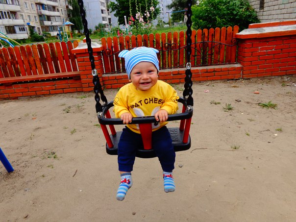 Часто слышу на площадке:"Мой сын/дочка уже может ходить,но боится".У меня ситуация прямо противоположная: мой сын ходить еще не может(я действительно чувствую,что он еще не готов,он и не стоит еще без опоры толком,чувства равновесия у него еще столько нет),но он НИЧЕГО не боится.Он считает себя вполне таким самостоятельным:держится за все одним пальцем,руки отпускает везде и тут же летит в тар-тарары,встает,отряхивается и с довольной улыбкой все повторяет.Ходит со всем: с горшком,коляской,толокаром,с нами за один пальчик(за две ручки не любит).Не знаю,пойдет ли к году.Коляска уже давно ему не друг, я вижу,как он ее недолюбливает,гулять с ним в коляске - одно мучение, и я ощущаю,что эра коляски близка к своему закату.