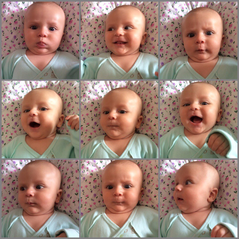 Из умений хватает за пальчик, взгляд наконец-то стал более осознанным, не в пустоту, смотрит на игрушки,следит за ними, переводит взгляд. игрушками особо не интересуется, пока в руку не вложишь, все подряд тащит в рот, кулаки самая вкусная закуска и до еды и сразу после нее)))