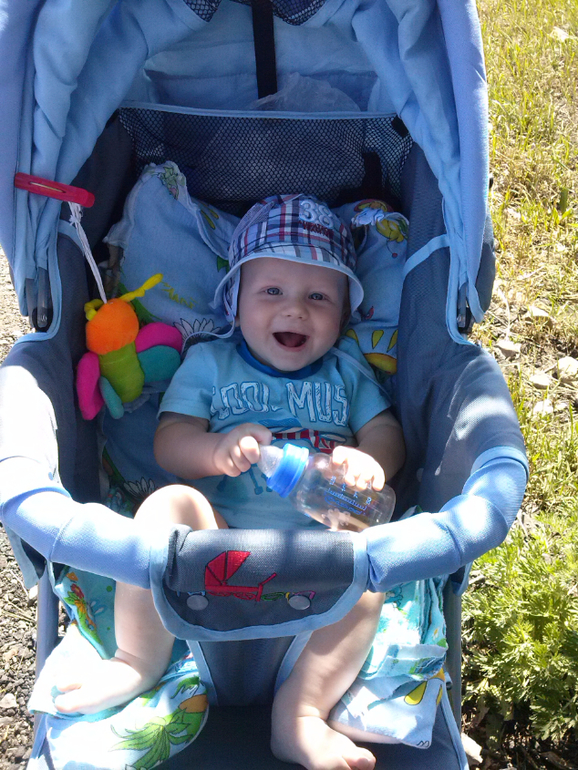 Физическое развитиеНу вот и настал такой далекий 6ой месяц!! Уже полгода мы счастливые родители прекрасного сынишки))) с каждым днем он становиться забавнее, муж над ним умиляется!!! Этот месяц я смело могу назвать месяц умелок!! Все по порядку: вес 8200 рост 73см. В 5 и 3 дня встал на четвереньки в 5 и 20 пополз, в 5 и 23 дня сел в 5 и 10 дней у нас вылез зубик))левый нижний)) Сейчас он уже пытается встать у опоры, но пока только на коленки удается! С 5,5 высаживаю на горшок, дома только хб трусики. И теперь памперсы у нас одеваются с криком. мы носимся в ходунках сметая все на своем пути.Купаемся в стульчике для купания теперь! Еще мы пищим, постоянно. Очень жду когда залепечет какие нибудь звуки).За этот месяц объездили бабушек, на пляжи постоянно зависали)) Я сделала тортик и сегодня с утра мы поздравили нашего Зайчика, папа вручик подарок который сделал сам.