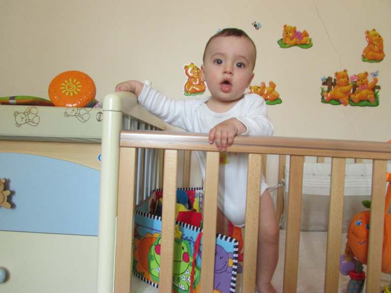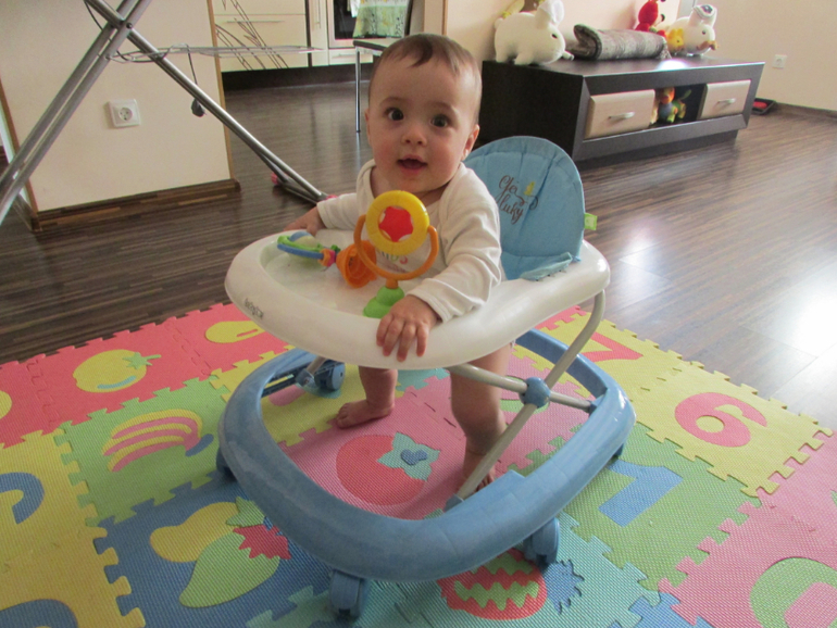 Физическая активность у ребенка возросла, очень даже возросла, я бы сказала) Постоянное шило в одном месте - то в ходунках летает за кошкой, то в них же играем с прятки по всей квартире(уже соображает суть игры), то в своей кроватке постоянно стоит и мишек наклеенных на стену отрывает. Часто с ним играем на коврике - паззле, иногда мультики Тини Лав смотрим, хотя к экрану интерес ребенок утратил в целом, даже в ТВ не залипает больше, максимум в рекламный блок. Очень умиляюсь, когда он порой затихает, сидя на моей кровати, и играет сам с собой тихонечко в игрушки. Такой настоящий человечек уже) В целом постоянное внимание при играх Платону не требуется, просто присмотр, не более, с рождения ребенок сам себя развлекает.