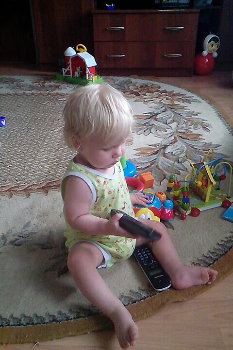 Что умеем: ходим за руку и с поддержкой, сам пока побаивается. Ненавидит ладушки, как только говорю : "ладушки", начинает злиться и хлопать по полу. Сороку-сороку зато показывает,)). Пирамидку и всякие такие штуки - только ломает. Очень любит нажимать на кнопки, давно сам умеет включать музыкальный центр, телевизор, как с пульта, так и с кнопки. Этому они почему то очень быстро учатся. Сам руками умеет есть макароны, ягодки, рис, можно положить в тарелку чего то кусочками и ребенок замолкает надолго,, война войной, а обед по расписанию. Залезает везде