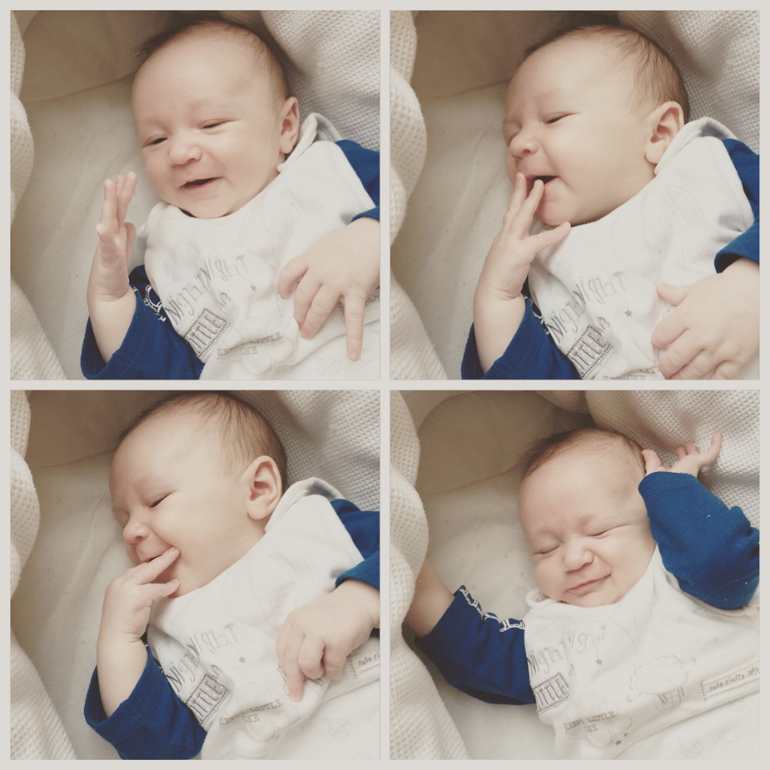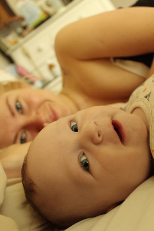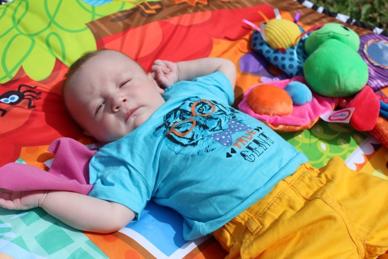Даже не знаю с чего начать, спим хорошо, с перерывами в 5 часов, в 10 утра уже бодрячком и обычно в хорошем настроение, сам с собой играется, увидев тебя расплывается в беззубой улыбке.