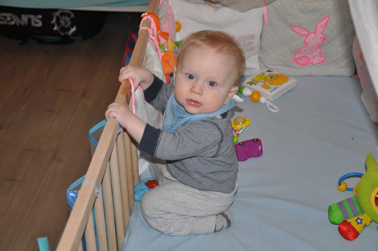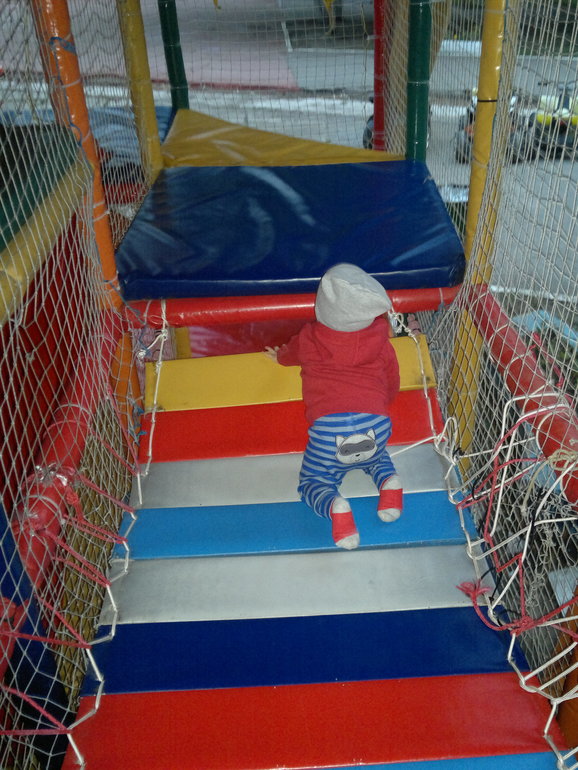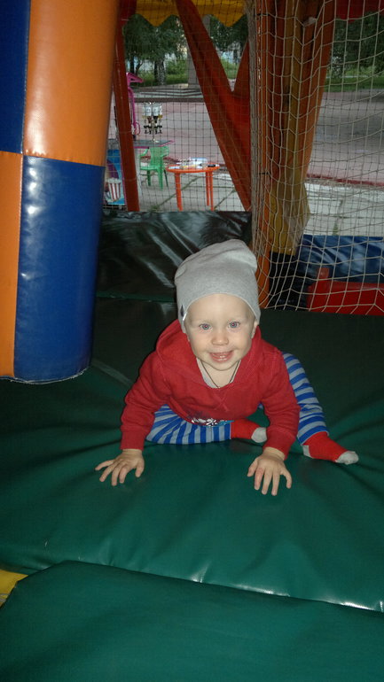 -Залазиет и слазиет с диванов, кровати, разных лавочек и домиков, в общем куда только можно залезть. Наконец-то запустила его в мягкий лабиринт в нашем парке, пока там не было больших детей, счастью не было предела, чувстую попали мы теперь и он каждый день будет туда проситься.