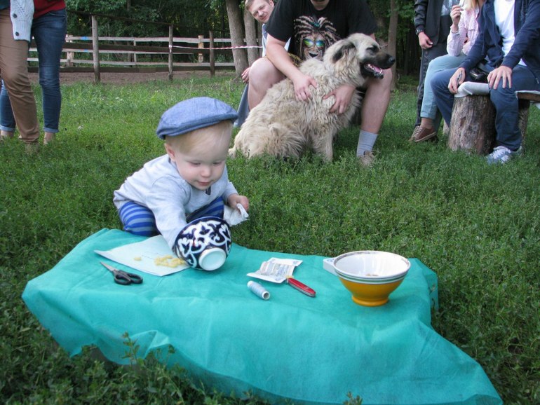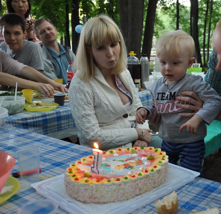 Уже годик. Наши выпускникиЧасть первая была тут. Ну, и кому интересно, освещу как мы отметили год сыну. Очень рада, что дети у меня летние, поэтому есть большой выбор как и где отмечать дни рождений. Отмечали без пафоса, на природе, слава Богу, погода не подвела, народу не считая детей было 25 человек, поэтому в плане стола у меня было ведро окрошки, закусочные пироги, закуски и казан плова (ну и сладкие пироги, торт).