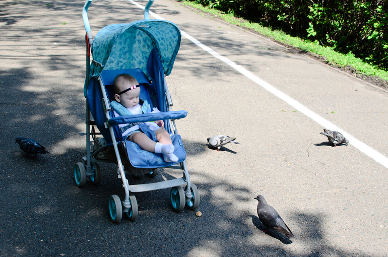 На прогулкеС недавнего времени, Поля отказалась спать на улице, и таким образом закончились мои тихие спокойные прогулочки с мирно сопящим в коляске ребенком. Пришлось слегка переиграть режим-и теперь ходим мы гулять сразу после сна дома (о режиме напишу позже, в посте про 7 месяцев)