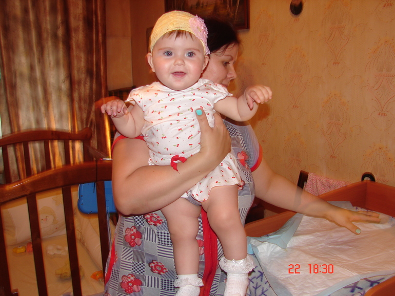 Стоим на ногах твердо, но не ходим - ленимся))). Около стула только, да вдоль дивана делает несколько робких шажков, но я не тороплю - когда созреет сама побежит. Вес у нас- 9,6, ост- 73 см. Набирает последние месяцы по 200 гр, но это и понятно - столько двигаться! В попе у нас пропеллер, к бабке не ходи!! Не ходим,зато ползаем очень быстро, такие забеги устраивает - не догонишь.