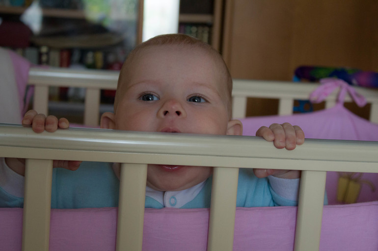 Педиатр говорит: "Ни в коем случае не давайте ей вставать". Конечно, я и сама понимаю - ножки не окрепли, нагрузка на позвоночник и всё такое, но она, просыпаясь, тут же хватается за бортики кровати и встаёт, выглядывает, где там мама. Когда держишь за ручки - она пьяненький матрос на палубе во время сильного шторма, но улыбается, хохочет во все ноль зубов, радуется.