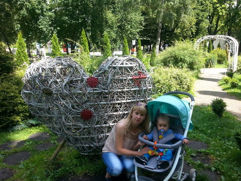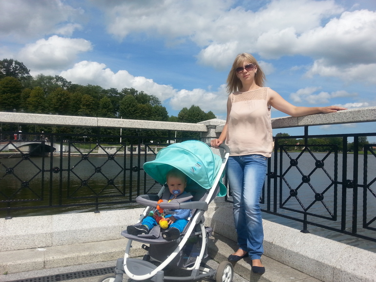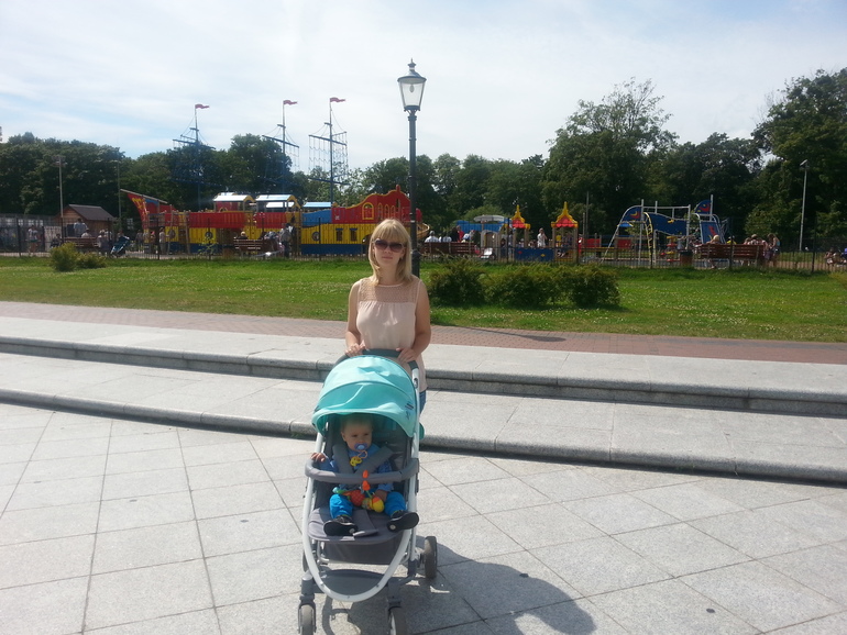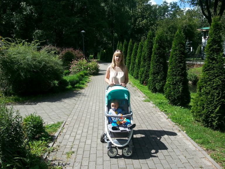 , что кстати для нашего лета в этом году большая редкость) Так вот у мужа как раз был выходной и мы решили выехать погулять в парк. Погуляли по парку, по набережной, покушали мороженое и попили коктейль))) Сынулька все это время не спал, а гуляли мы 2 часа и ка раз в его обеденный сон, так что Димочка только все смотрел по сторонам, на качельки и на деток