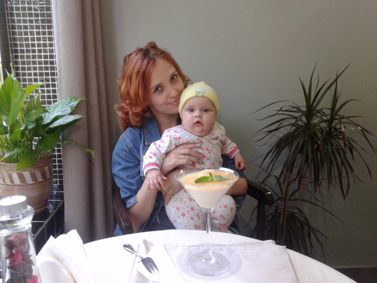 Кушает кашу, обожает персики и абрикосы. Даю чуть чуть, оторвать потом не могу.