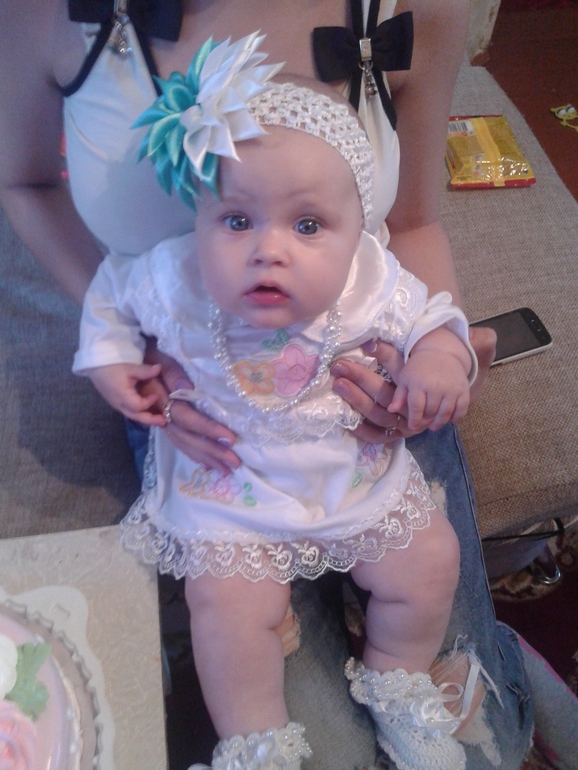 Вес и рост пока незнаю. Из нового: пытается встать на колени и раскачиваться. Научилась дуть, теперь постоянно дует))) и кусает мои плечи. Еще притягивает ручками мое лицо и пищит в него))))