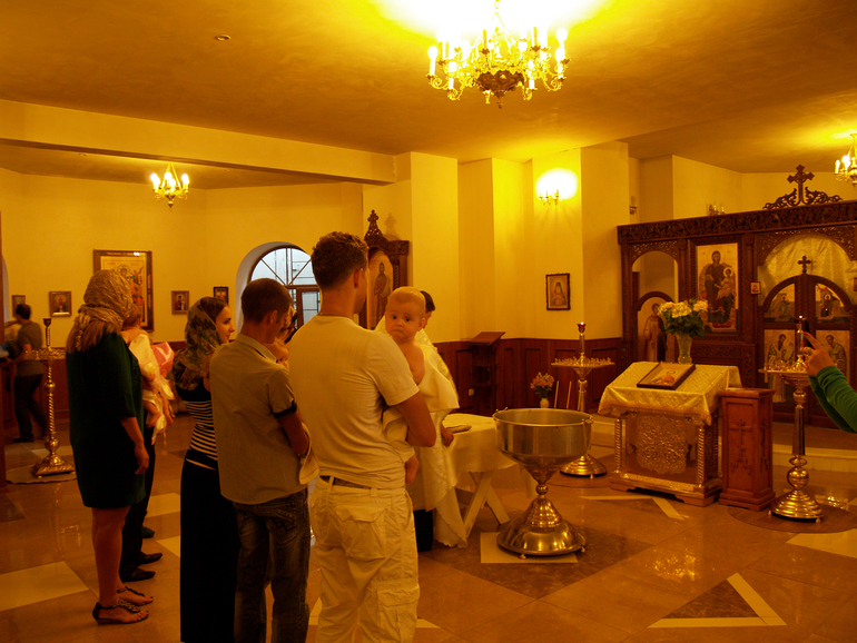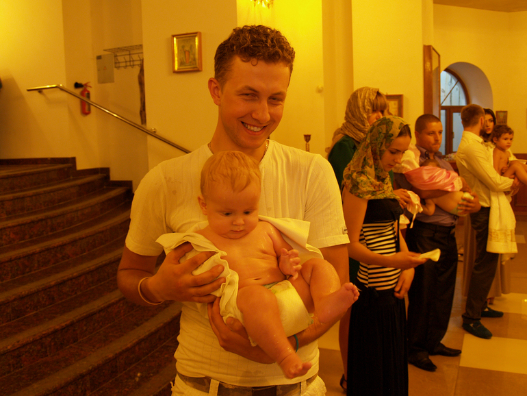 Во время крещения один из 4 детей постоянно плакал и в какой-то момент Маркуся решился подтянуть ему в унисон, но быстро успокоился и уже с интересом наблюдал за происходящим.