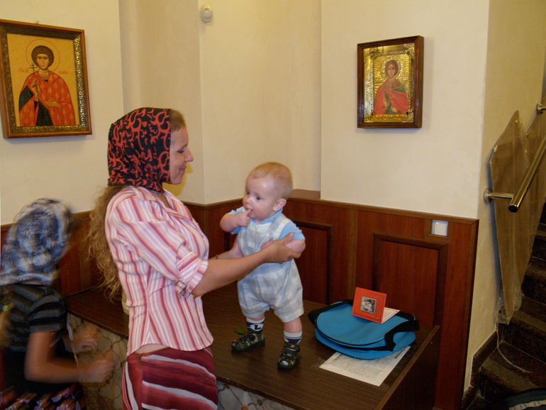 Крещение. Наконец, и у нас есть ангел-хранитель, а произошло это чудесное событие 19 июля в храме святого мученика Виктора, который находится в 602 мкр возле перинатального центра. Хотя нам очень далеко до него ехать, но хотелось именно в этом храме. Вспоминаю, как лежали мы с птенчиком в перинатальном и окно нашей палаты выходило на этот храм, глядя на него я молилась, чтобы сынок поскорее выздоровел.