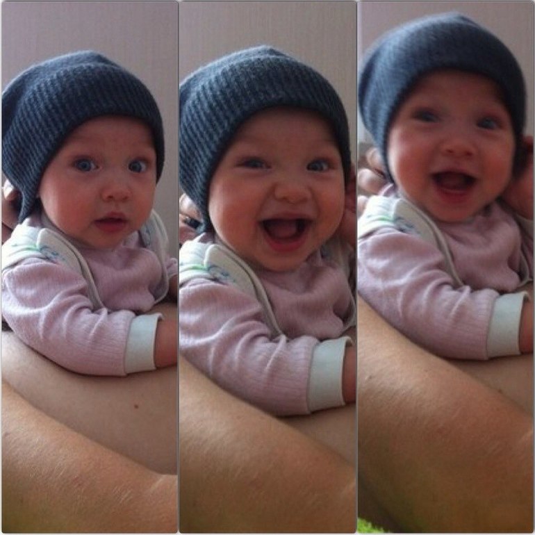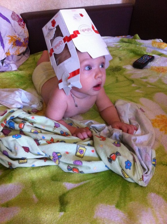 Очень хитрая стала. Начала понимать, что ели чего-то ей нужно, то можно просто похныкать, и всё будет! Как например надоело лежать, ползать, сидеть? Не беда! Мама готовься либо к истерике, либо носке на руках! Что говорить, выбираю меньшее из зол, беру на руки, и таскаю, пока не найду чем завлечь. Понимаю, что нужно прекращать эту лавочку бесплатной "тёти-лошади", но пока не представляю как, и каким образом. Ещё мы научились хвататься за волосы, лицо, и выдирать либо же сжимать, со всей силы, и при этом крича и заливаясь в хохоте, хулиганка маленькая, ещё такую мордашку делает забавную!:) Так же мы научились злиться, или ругаться, и при этом хмуря брови! Вообще с мимикой и эмоциями у нас проблем нет!:)