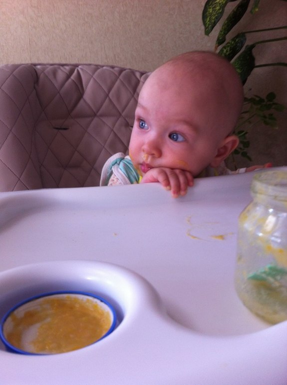 Еда. Все твердят, что пора вводить прикорм, да и на ББ девчонки уже кормят капустами, кабачками и прочим, а я видимо "недомать", потому что я даю только кусочничать, пробовать, так официально прям ещё ничего не вводила. Банан пробовали, яблоко пробовали, ягоду тоже пробовали. да почти всё пробовали по чуть-чуть! Даю пюрешки. И всё на этом, надо наверное начать уже кормить ребёнка!:) Так что у нас всё ещё в приоритете молочко мамино, и мы не собираемся его менять пока!:)