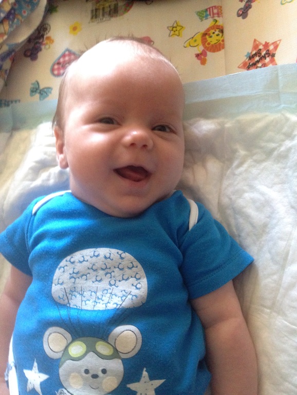 Он стал улыбаться, это такое мимими)))) Иногда в 6 ура проснется и давать лыбу давить)) Стал агукать и повторять, когда агукаешь с ним, что успокаивает меня перед прохождением повторного аудиоскриннинга....