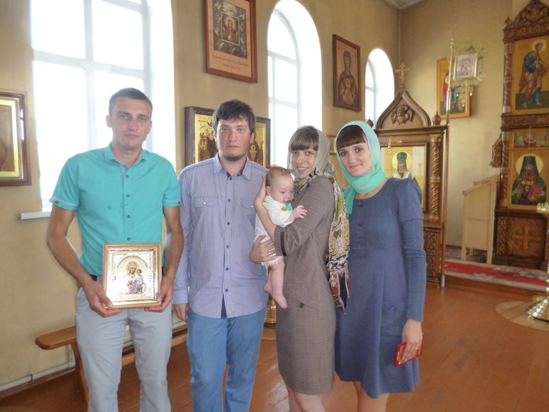 1 августа покрестили)) Вела себя хорошо, думала будет хуже! Когда окунали в купель-Сашку было вообще не видно-один затылок)) Маленькая моя! Причастили на следующий день. Крестик носим не снимая!