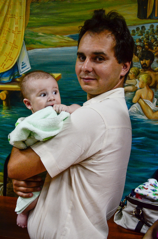 21 июня 2015 года мы покрестили малыша. Храм я выбирала очень долго, ведь в нашем маленьком городке их 3. Пошла на поводу у своей мамы и разочаровалась. Народу много, опускали малышей в маленький бассейн ( а я хотела в " чашу "), и везде деньги деньги деньги.