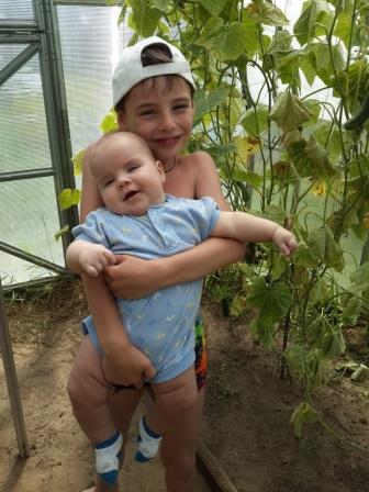 Я даже успеваю ковыряться в огородике. В доме сидим только в самое пекло, в остальное время на участке, вот и загорели, как негры))) Сегодня мазались даже Пантенолом, плечи сгорели всё-таки. Вечером нет никаких проблем с укладыванием, все мгновенно засыпают, как только оказываются в своих постелях. Просто кайф на даче!