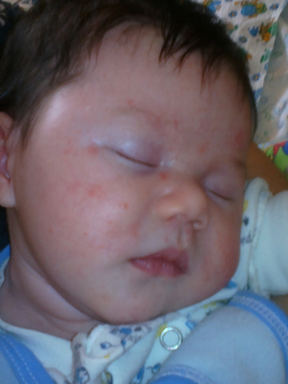 Сыпь усилилась, уже все щеки и даже кожа головы в прыщиках((( Приходила врач, сказала, это гормональная сыпь, лечить не нужно. Я успокоилась, но ребенок выглядет кошмарно - живого места нет на личике, так жалко смотреть прям((( Ну, ничего. Придется потерпеть...