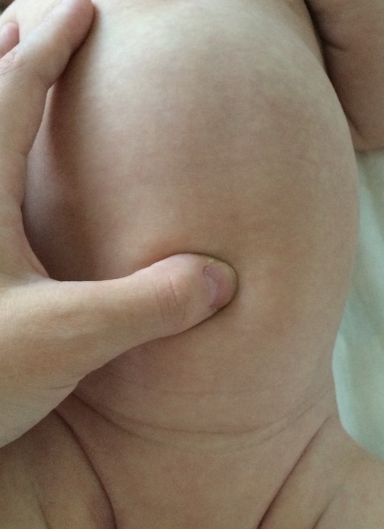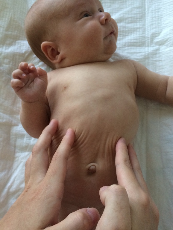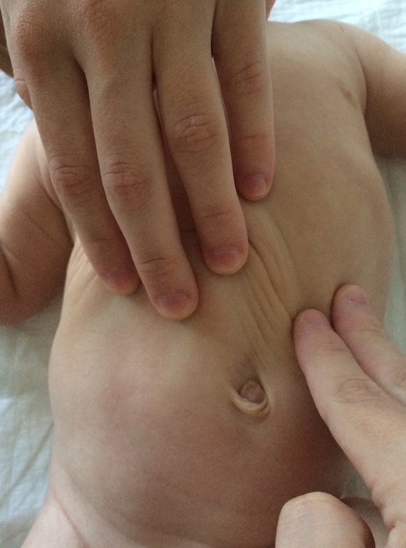 На осмотре в два месяца у Гриши выявили наследственную пупочную грыжу. Она небольшая щелевидная и требует регулярных занятий для полного выздоровления. Эти упражнения подходят для детей без или с небольшой грыжей, не стоит выполнять их, если грыжа круговая и крупная. Конечно, пуп после рождения должен полностью зажить.