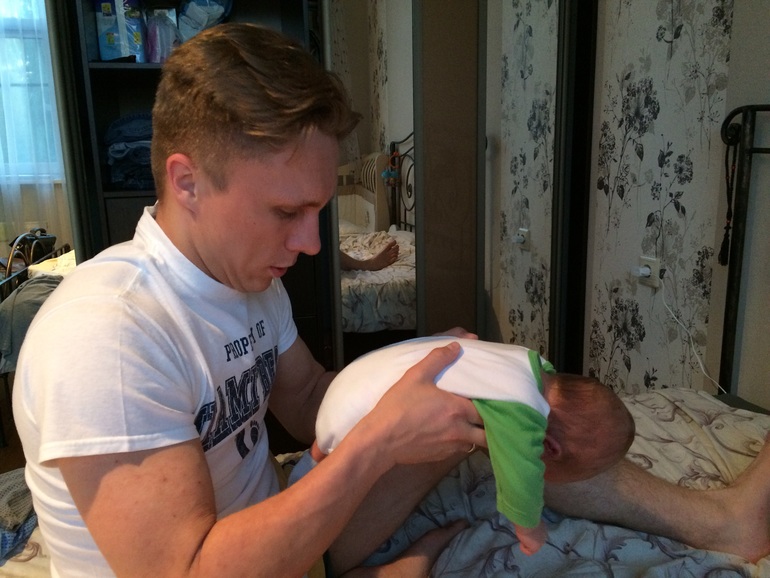 После рождения привычное положение головы Гришы было повернутым вправо. Остеопаты порекомендовали осторожно предлагать ребенку поворачивать голову в другую от привычного сторону и развивать мышцы шеи. К ребенкиному месяцу привычное положение исчезло благодаря вот этим занятиям.