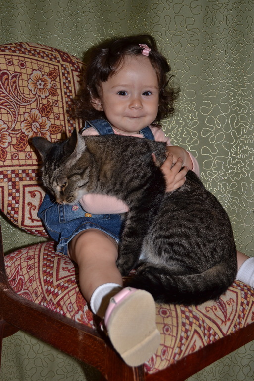 Любим все безумно нашу малышку, и она нас одаривает обнимашками и слюнявыми поцелуями:-).