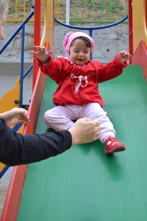 Спим 2 раза в день, до обеда и часа в 3 дня, гуляем часто, подолгу, очень любим лазать по лестницам, играть в футбол, качели, короче в коляске практически не сидим.
