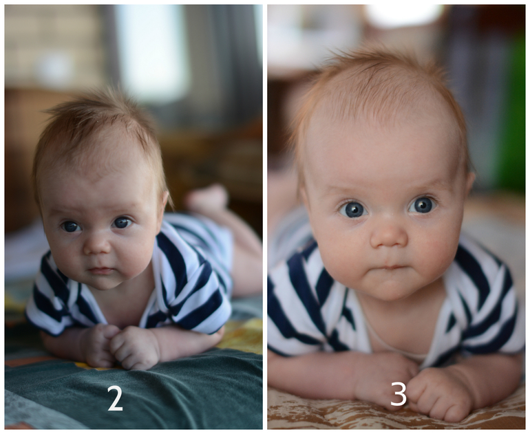 Улыбашка такой) Пытается смеяться, иногда даже сам пугается от своего взвизгивания)) Агукает во всю, стал болтать, так забавно))) Му, бу, ба, да, так весело)))) Я его очень люблю, но это ожидание проверки ушек меня просто убивает... Но верю, что мой малыш здоров и нам не понадобится постороннее вмешательство! В общем вот так мы поменялись с двух месяцев)