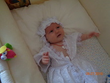 Юля, привет! Лапушка ваша уже большая))) По-моему, на старшую сестричку похожа! А как это вы ее дома покрестили?