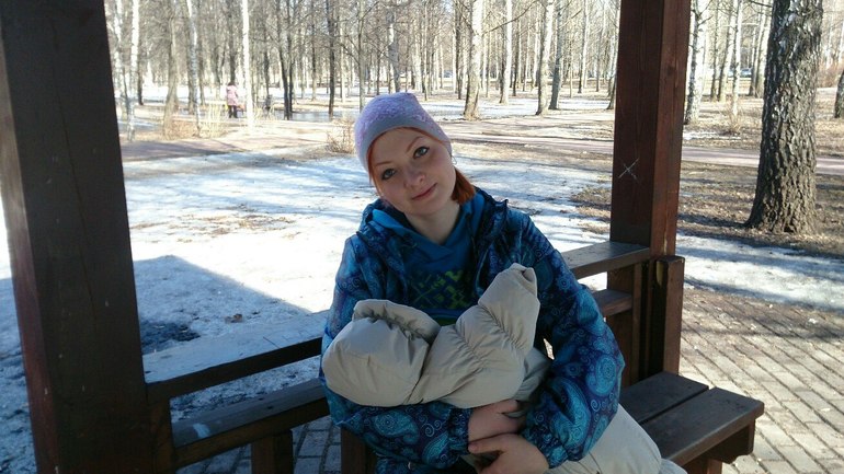 Весна, кормлю на прогулке. Сейчас, летом, даже кормительной одеждой не заморачиваюсь. Если надеть достаточно просторную футболку, то поднятый край все прикрывает и ничего кроме куска моего живота не видно..