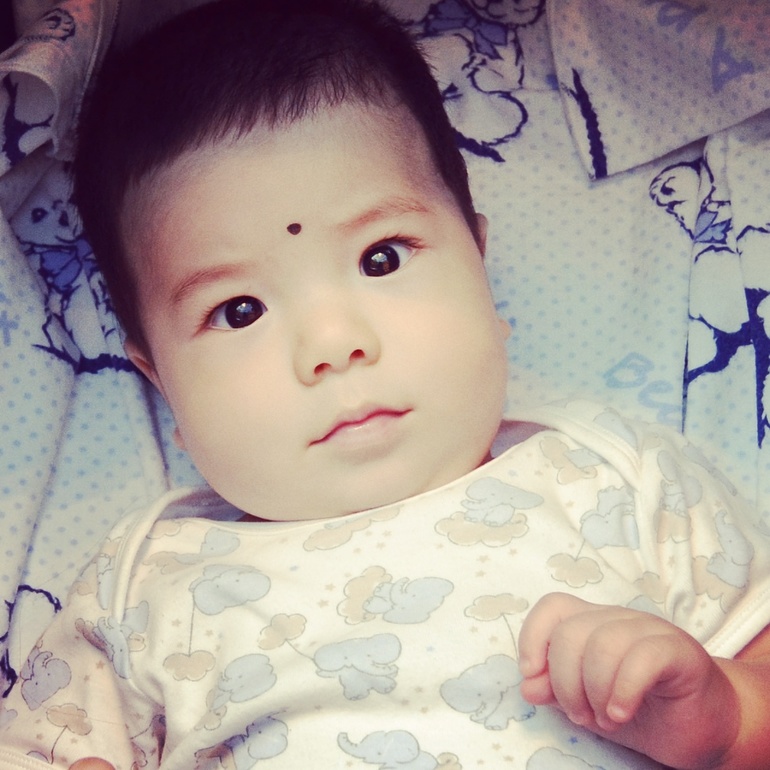 Имран умеет переворачиваясь доставать игрушки. Крутится вокруг своей оси пока не ляжет лицом к интересующему предмету, а потом через живот и обратно и...цель достигнута! Зачем ползать, если есть такой прекрасный способ передвижения..