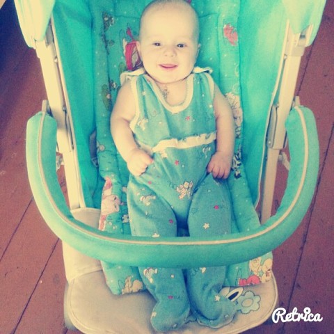 Полусидя мы не хотим,мы хотим ходить.Пытаемся ползти.Поем сами себе песенки с 4 месяцев,когда спать ложимся.Слюни рекой,все в рот.Висим на титьке.