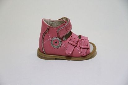 Вам бы посоветовала ортопедическую профилактику Тотто, Скороход (можно Скороход-серия Орто). У этих российских фирм есть модели с обязательными элементами ортопедии: каблук (часто косой каблук Томаса от проворачивания стопы внутрь), жёсткая пятка иногда с продлением жёсткости до середины стопы (у Тотто этого нет, да и при отсутствии проблем это не нужная опция), супинатор (не надо жёсткий, не надо слишком мягкий, необходим средний пружинящий: и ребёнку удобно и мыщцы ножек тренирует). Ну и ещё неплохо застёжки-липучки (шнуровка, ремешки) не менее 2-х, а лучше 3-х: они позволяют зафиксировать ножку в оптимальном для малыша положении, комфортно и смещения стопы не будет, т.е. болтаться из стороны в сторону в сандаликах нога не будет.