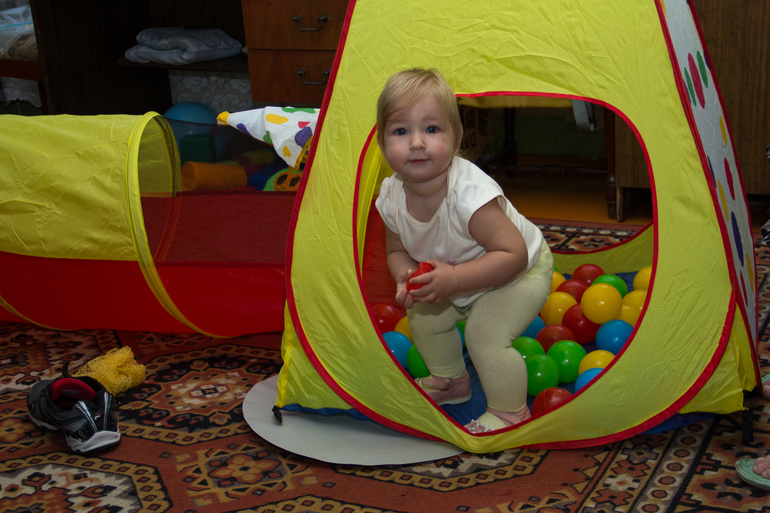 Немного подкачал Машин сон, до гостей она поспала как обычно 30 минут, а вот второй сон не задался, вместо обычных час-полтора, она поспала 10 минут, поэтому была крайне серьезна и немного капризна.