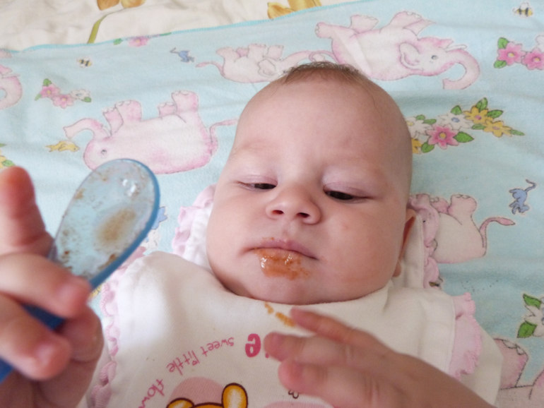 По поводу прикорма пока ещё ни чего так особо ни даю, т.к молока хватает. Правда один раз попробовала дать дочи немного яблочно-морковного сока. Вкуса она ни поняла