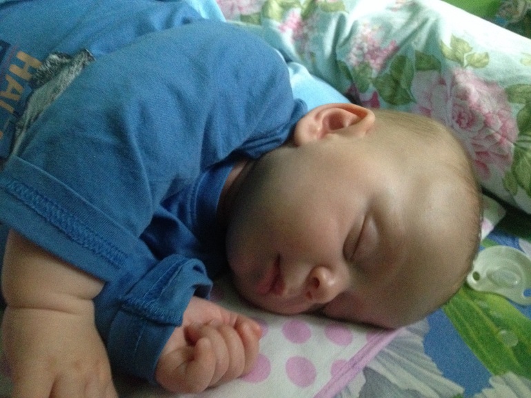 Вот уже 2 дня как спит в своей кроватке. Ура! Да и жарко ему со мной спать, всегда потный был. Ночью раза два- три ест.