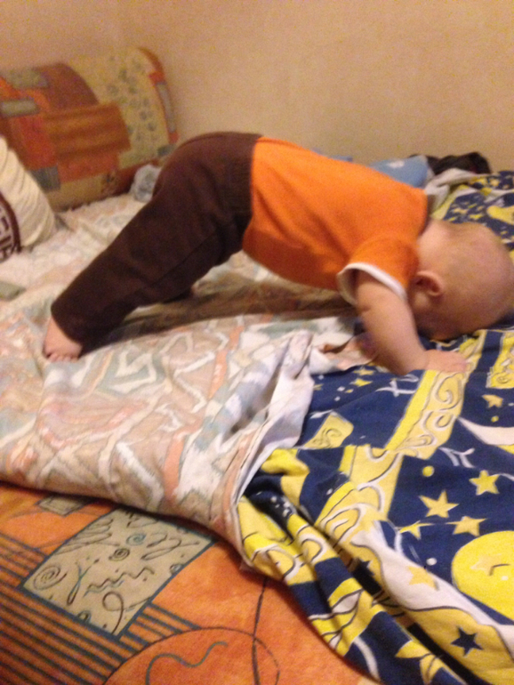 мы так делали перед тем как встать на четвереньки) измучил меня,постоянно лицо было красное, так как он проталкивал себя вперед и лицо так и не отрывал. Потом сказали, что это тонус небольшой в ножках, что подогнуть тяжело