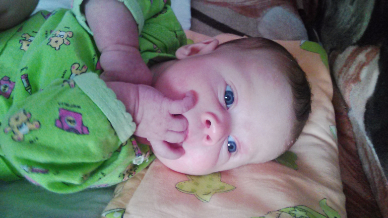 Вот такие мы были в месяц. Рост 53 см вес 3574,